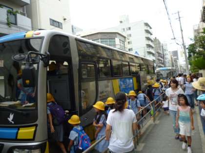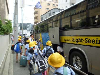 出発式を終え、各クラスごとにバスに分乗して、鉢伏高原にむけて出発しました。