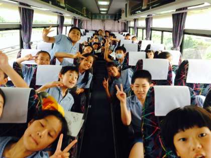 バスも楽しんでます。今は、みんなで歌をうたってます。楽しいです。