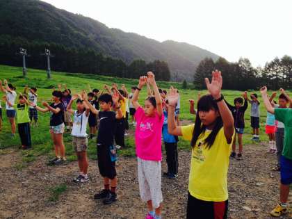 みんな元気に手足を伸ばして、いち、にい、さん。