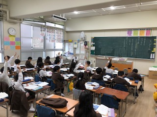 学習の最後に、客船の動画を見ました。とても豪華な様子に驚いていました。