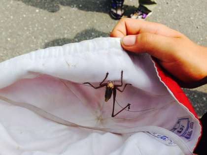 タブレットでバッタを撮っています。