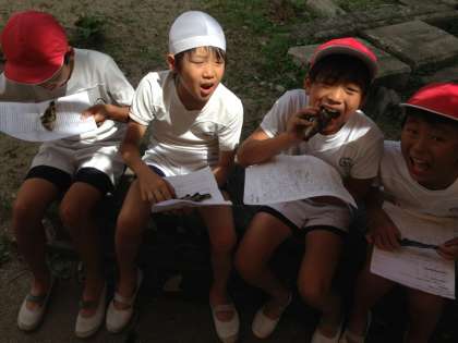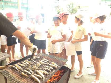 悪戦苦闘して、捕まえたヤマメを炭火で焼いて食べます。