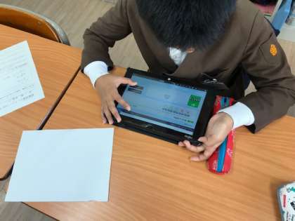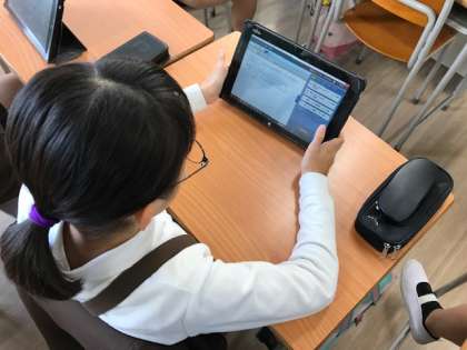 来週の経年テストに向けて、タブレットのミライシードを使って、6年生の学習の復習を行っています。