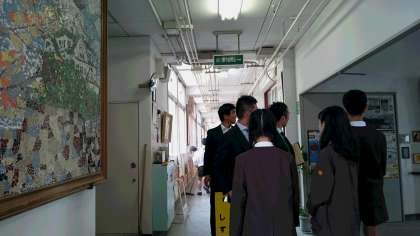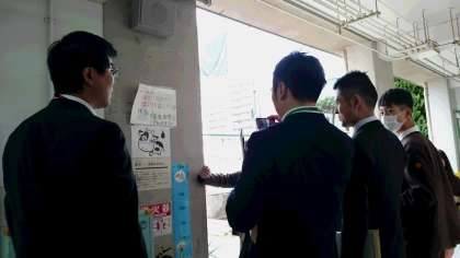 SPSの視察に来られましたので、生活安全委員会の児童が校内の安全対策について、説明を行いました。
