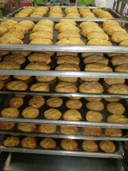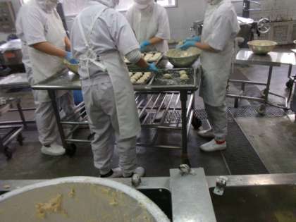 今日の献立は「コッペパン、マーガリン、とうふハンバーグ、スープ煮、スライスチーズ、牛乳」でした。とうふハンバーグは、かための充填どうふに、ツナや荒みじんのたまねぎ、調味料を混ぜ合わせてよく練り、一つずつ丸めました。今日、堀江小学校では1206人が給食を食べました。1206個のとうふハンバーグを丸めるのに、4人で1時間半もかかりました。