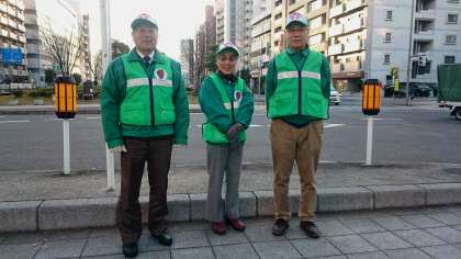児童の登下校の安全のため、見守り隊の方が朝立ってくださっています。