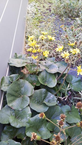寒い冬ですが、校庭には草花(ツワブキの花)が咲き始めています。