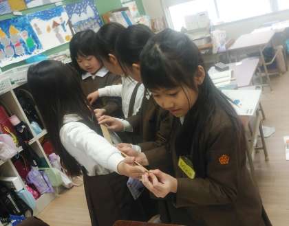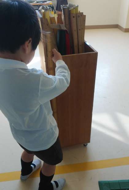 竹ざしを使って、「1ひろ」をはかったり、身近な1メートルをさがしたりしました。