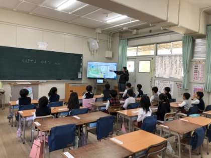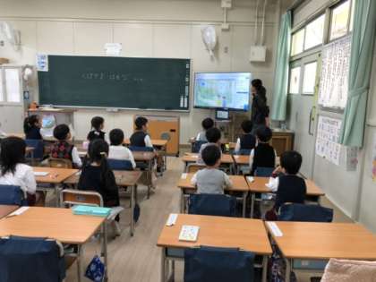 堀江幼稚園の園児が、小学校で体験授業を受けました。