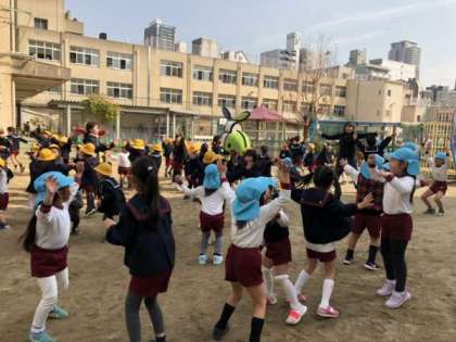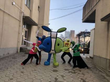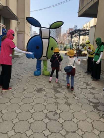 ニッシーと堀江レンジャーが朝のあいさつに来てくれました。