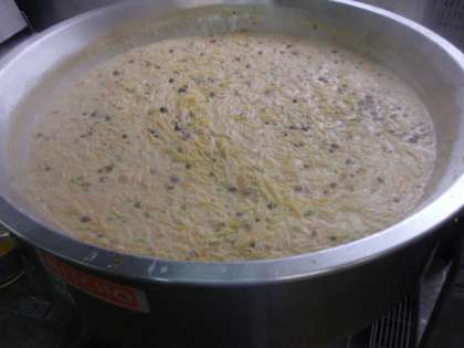 今日の給食は「黒糖パン(2分の1)、さけのクリームスパゲッティ、カリフラワーのサラダ、牛乳」でした。クリームスパゲッティに使ったさけは、冷凍になった紅鮭のフレーク状のものを使いました。ていねいにホワイトルウを作り、生クリームも使ったので濃厚でピンク色のきれいなクリームスパゲッティになりました。これに、さっぱりとしたカリフラワーのサラダをつけました。