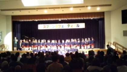 堀江幼稚園の園児は、「君に会えたら」「ありがとうの花」「堀江幼稚園こどものうた」を元気いっぱい歌いました。