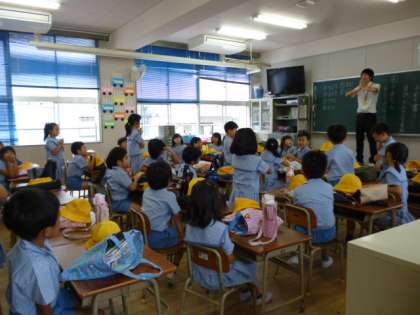 始業式のあと、さっそく漢字の書き取り練習をしたり宿題の答えあわせ等で頭の体操をしたり、ゲーム大会で子どもたちの健康チェックしました。