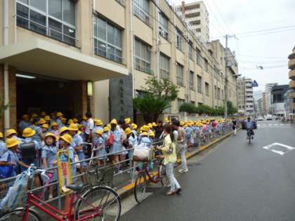 下校時に小雨が降りだしたので、予定していた集団下校を取りやめましたが、教職員が児童と一緒に帰って、通学路の巡視を行いました。