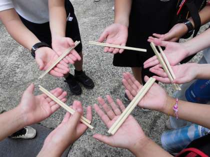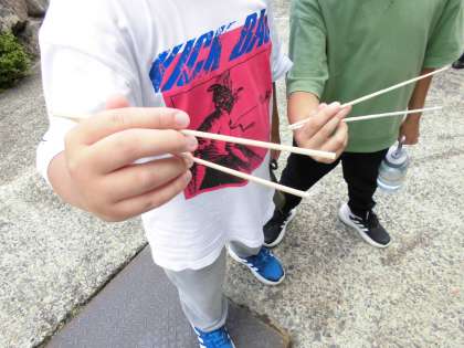 全体を細く細く削った箸、先の部分だけ細く削った箸、緑の部分に傷をつけて模様を描いた箸など、苦労はしましたが子どもたちの思い思いの箸をつくりました。