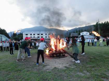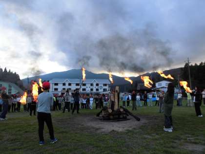 やがて炎が小さくなり、「今日の日はさようなら」をみんなで歌って宿舎へ戻りました。