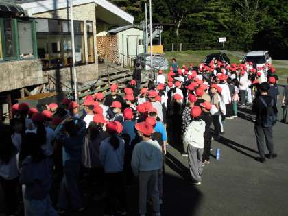 校長先生からの話の後、体操をして今日の予定の確認をしました。