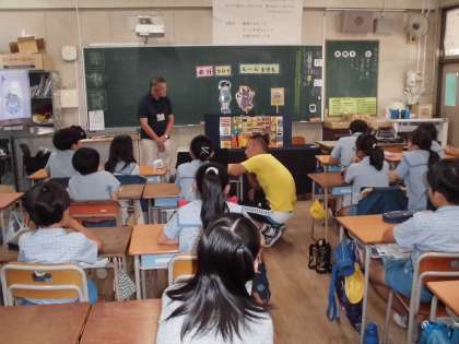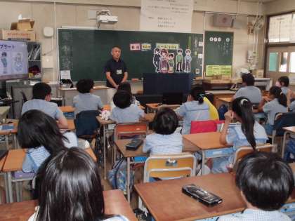 今回は、飲酒・喫煙・薬物乱用防止、窃盗などの犯罪、スマートフォンの適切な使用など、多岐にわたるテーマを取り扱っていただきました。子どもたちに分かりやすいよう、ペープサート(人形劇)を交え話をしてくださり、子どもたちは熱心に聞いていました。子どもたちが、自分自身の身を守り、社会のルールを理解し、責任ある行動をとることを学びました。