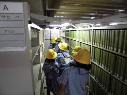 図書館では、普段見れない書庫を見学させていただいたり、いろいろな方に使っていただく工夫を聞かせていただいたりしました。