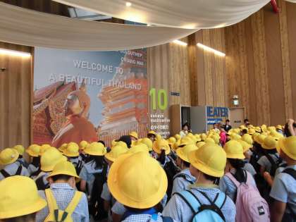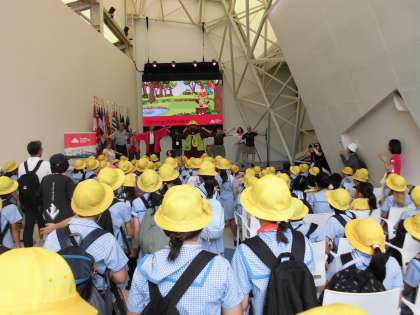 昼食後、クラスごとでパビリオンは違いましたが、クウェート、タイ、カナダ、アラブ、ヘルスケアのパビリオンに行きました。それぞれのパビリオンで工夫が凝らされており、子どもたちは楽しんでいました。特にカナダでは、堀江小学校のためにダンスを披露してくれ、音楽に合わせて、体を揺らした手拍子をしたりして楽しんでいました。