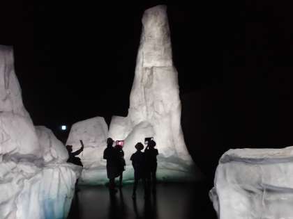 それぞれのパビリオンで、係の方に温かく迎えていただきました。カナダ館では氷山にタブレットを向けるといろいろなものが映るので、たくさんある氷山の一つ一つにタブレットを向けて映るものを見て楽しんでいました。