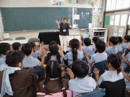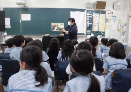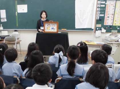 ボランティアの方にお越しいただき絵本の読み聞かせをしていただきました。絵本のほか、紙芝居や大型絵本も持ってきて読んでくださりました。子どもたちは、体を前のめりにして熱心に聞き入っていました。また、読み聞かせの合間に手遊びもしてくださり楽しい時間を過ごすことができました。