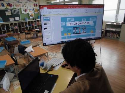 5時間目、6時間目の時間を使って、双方オンライン学習を行いました。