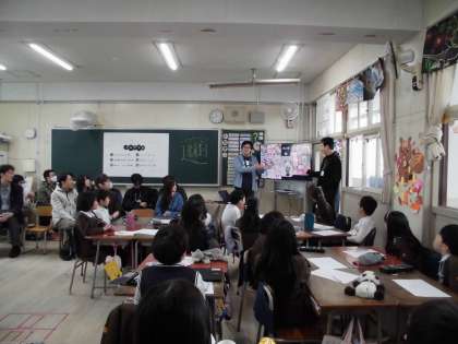 海外出身の大学生が来校し、3年生のクラスと国際交流をしました。