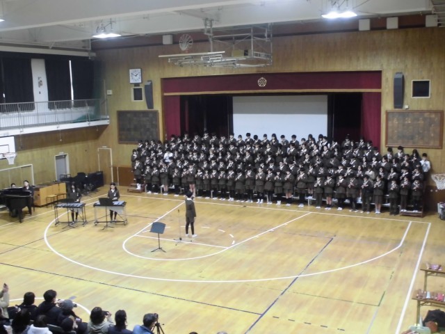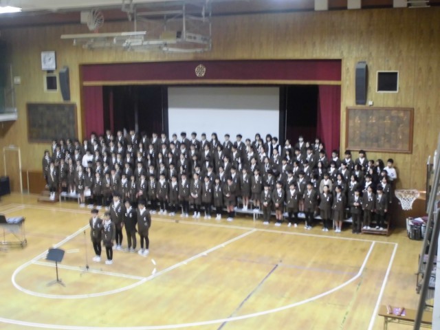 5クラス全員でのリコーダー奏と合唱、その後クラスごとでの合奏、そして最後に6年生全員で合唱をしました。