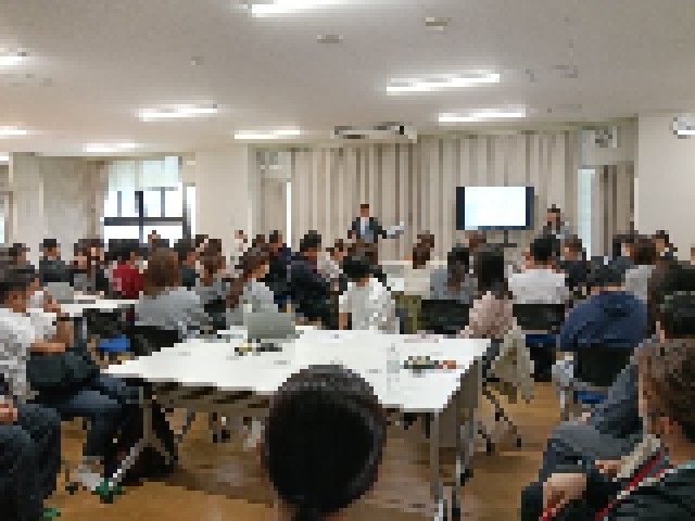 堀江小学校東学舎西学舎の教員全体で今年度の研究について考えました。