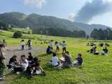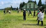 室内オリンピック後には、2クラスごとに体育館でドッジボールと高原での遊びに分かれ...