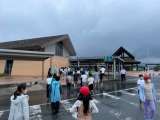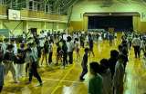 急な大雨にあい、最後の昼食は体育館でいただきました。その後、閉舎式を行い、かねい...