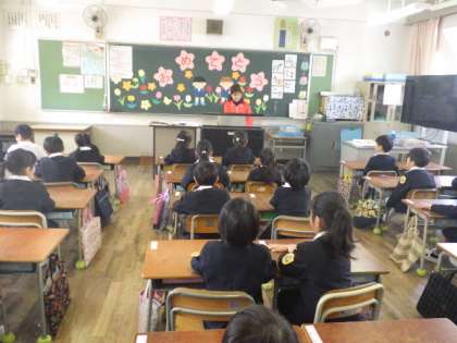一年生はトイレの行き方やチャイムのことなど、一つひとつ丁寧に担任から教えてもらっています。