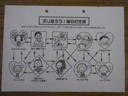 保健の中井先生から毎日の生活の振り返りのお話を聞き、勉強した後、測定に移りました。