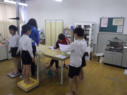 中井先生の保健の話の後、5年生は発育測定をおこないました。