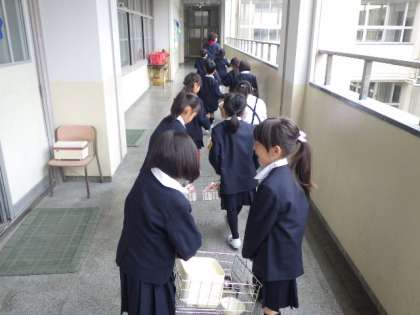ごちさそうさまはみんなでした後、給食当番が食器を片付けました。