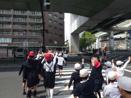 本校校区は東西・南北に大阪を代表するような大きな通りがあり、車の往来もたいへん盛んな地域です。学校では継続して登下校の安全を指導していきます。
