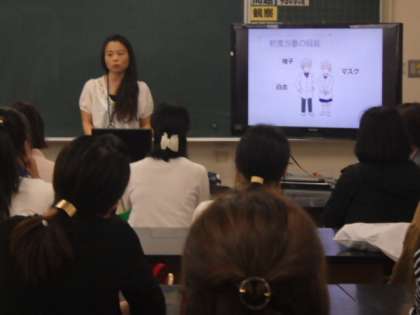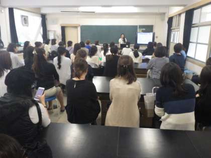 九条東小学校の栄養教諭である南浦先生に来ていただき、1年生の保護者の皆様向けに給食についてのお話がありました。