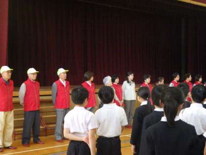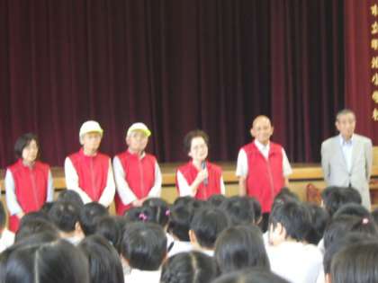 校長先生のお話の前に登下校の見守りをしている地域の皆様の紹介がありました。