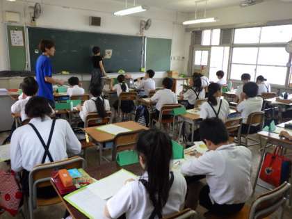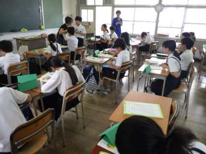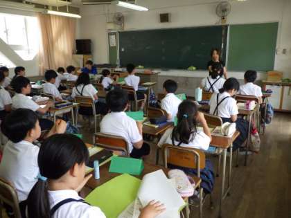 明治小学校ではネイティブの外国語の先生に加え中学校の英語の先生と一緒に学習する時間を設けています。専門的に外国語を教えていくと同時に、中学校への進学をスムーズに行っていけるように取り組んでいます。