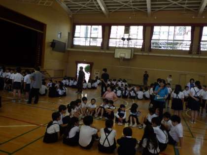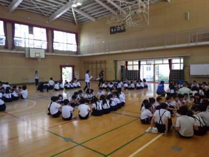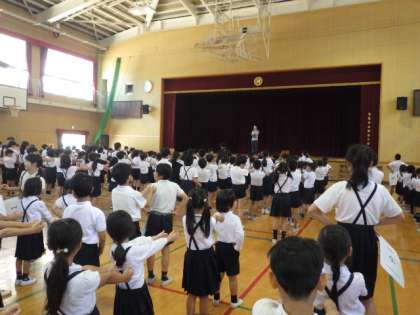 1年生から6年生までが集まり、今日は自己紹介を行いました。