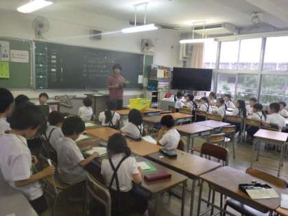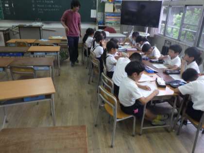 明日の町たんけんに備え、みんなであいさつや質問を確認しています。