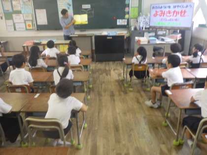 毎週水曜日の朝の会は読書タイムと読み聞かせです。