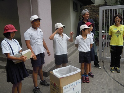 児童会でペットボトルキャップとプルタブを集め、寄付する運動を今週取り組んでいます。朝、正門で登校する友だちに呼びかけています。