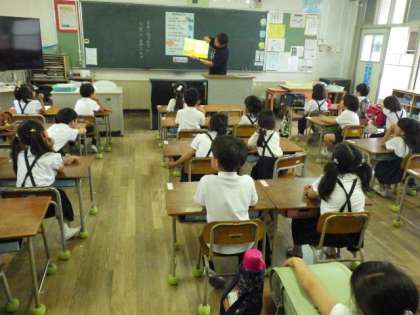 各クラス2組で読書ボランティアによる読み聞かせが行われました。