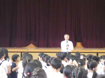 校長先生からは先週土曜日の土曜授業、その後のビオトープフェスタのお話がありました。
