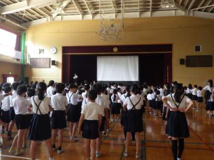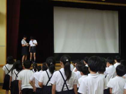 集会の終わりには明日のせいけつ調べについて案内がありました。