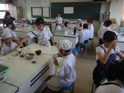 家庭科クラブではパフェを作り、みんなで楽しく食べました。
