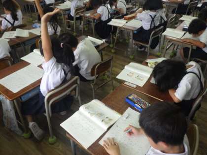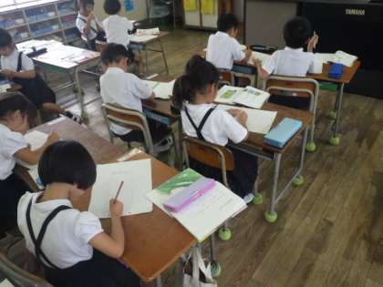覚えたてのひらがなを使い一生懸命考えながら学習しています。