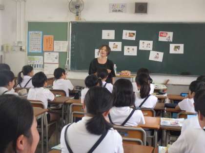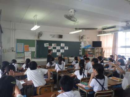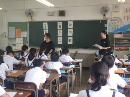 花乃井中学校の馬渕先生と一緒に外国語の学習をしました。